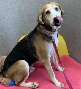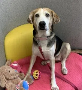 An 8-year-old Hound in search of her FOREVER home. She loves greeting everyone with a big smile and a wagging tail. She may be a senior gal, but don’t let that fool you; she is still full of gentle cuddles and mellow moments. Her days are happiest when she is lounging by your side or sharing a funny moment to make you laugh. Scarlett is very loyal and loves being your devoted companion. If you’re looking for a sweet, friendly soul to add warmth and joy to your home, look no further.